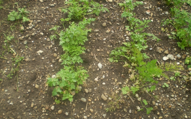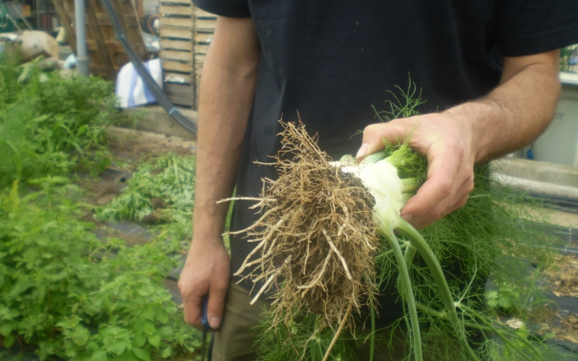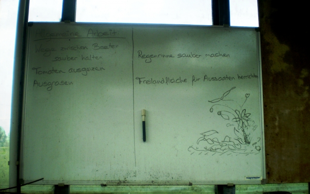 Herr Kamlah gibt dem Gemüse bei ihm keinen chemischen Dünger, sondern nur natürlichen, also organischen Dünger, der schmeckt ganz seltsam nach Zucker und Öl. Daher sind alle Produkte der Gärtnerei garantiert „bio“!