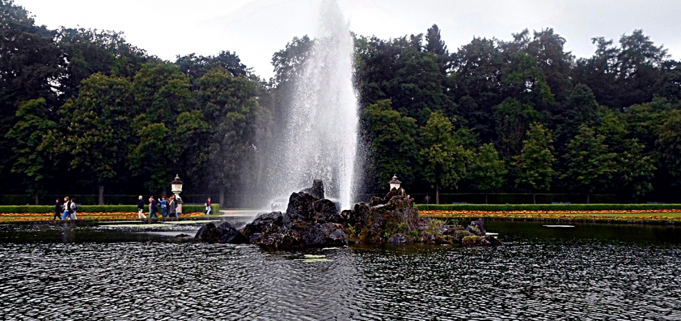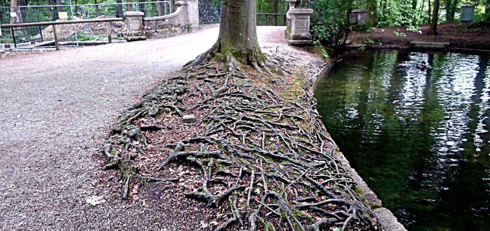 Der Park ist sehr schön! Es gibt Brunnen, die halbnackte Statuen sind uns aufgefallen, es gibt einen wilden Waldteil und einen schicken Schlosspark. Durch den wilden Wald fließen mehrere Flüsse und durch den Schlosspark fließt ein großer Kanal (der übrigens von der Würm abgeleitet wird).