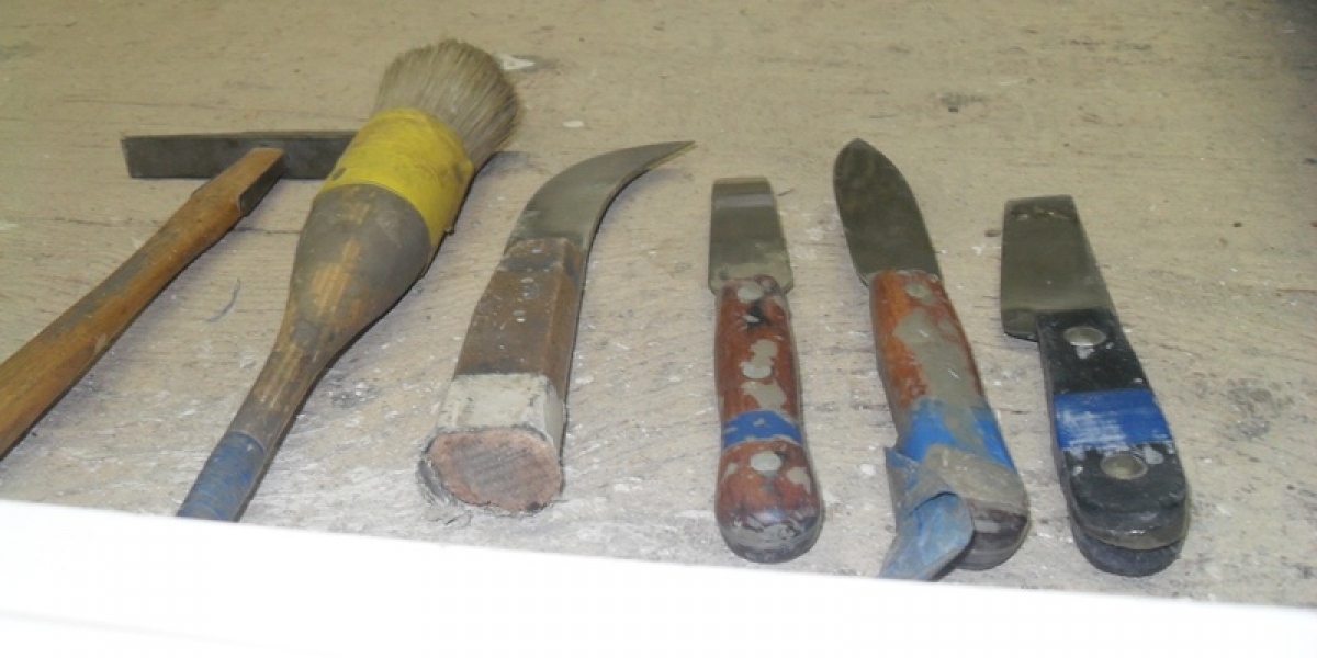 Wir konnten in der Werkstatt den Glasern bei der Arbeit zu sehen. Sie zeigten uns die Werkzeuge, die man für die Arbeit mit Glas braucht und wie sie benutzt werden, z.B. ein Kittmesser, ein Bleimesser und ein Aushaumesser. Diese Werkzeuge braucht man in der Glaserei, um Scheiben zu reparieren. Zuerst wird die kaputte Scheibe mit dem Aushaumesser heraus gehauen und dann eine neue Scheibe mit Kitt eingebaut. Das ist ziemlich schwierig und man kann sich schneiden, wenn man nicht aufpasst.