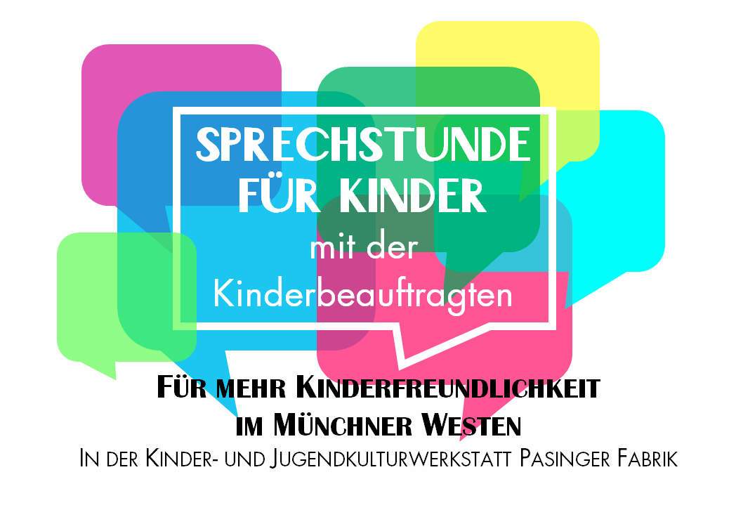 Alle Kinder aus dem Münchner Westen haben am Freitag, 21. November, in der „Kindersprechstunde“ wieder die Gelegenheit, Wünsche und Anregungen zu äußern. Evelyn Lang, Kinderbauftragte des Bezirksausschuss Pasing-Obermenzing sowie weitere Fachleute aus Verwaltung und Stadtteilpolitik haben ein offenes Ohr für alle Fragen, Probleme und Vorschläge rund um ein kinderfreundlicheres Pasing. Die Sprechstunde von 15.30 bis 17 Uhr ist kostenlos. Eine Anmeldung ist nicht notwendig. Mitmachen können alle Kinder und Jugendliche von sechs bis 15 Jahren.